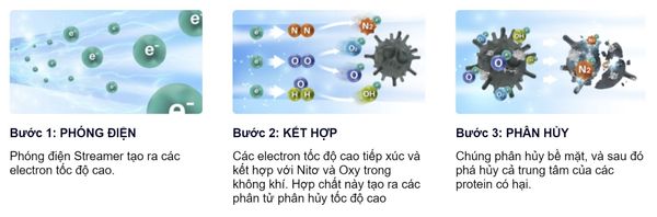 Cơ chế phóng điện Streamer hoạt động hoàn toàn bên trong thiết bị, tác động mạnh mẽ và trực tiếp lên các phân tử bị giữ lại trên phin lọc theo 3 bước: