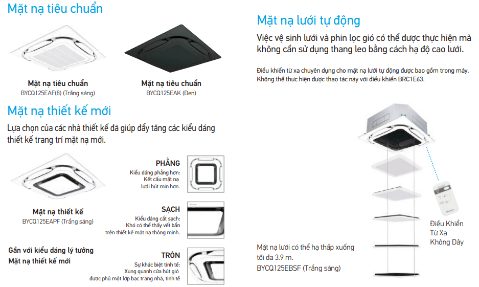Thiết kế âm trần gọn gàng, kết hợp mặt nạ thẩm mỹ cao, có thể lắp đặt trong không gian trần hẹp, giúp tiết kiệm diện tích và tăng tính sang trọng cho không gian nội thất.