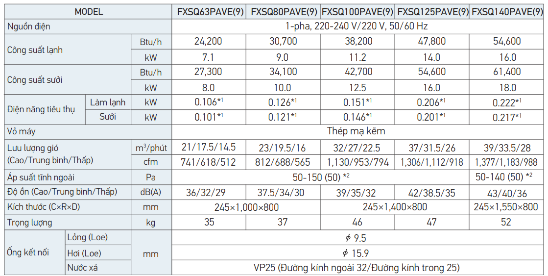Ưu điểm nổi bật của dàn lạnh dấu trần VRV Daikin FXSQ100PAVE9
