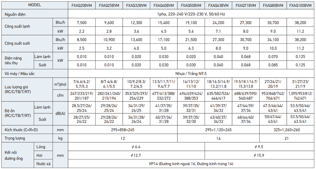 - Model 71/80/100 mới cung cấp công suất lớn hơn cho các không gian rộng lớn.