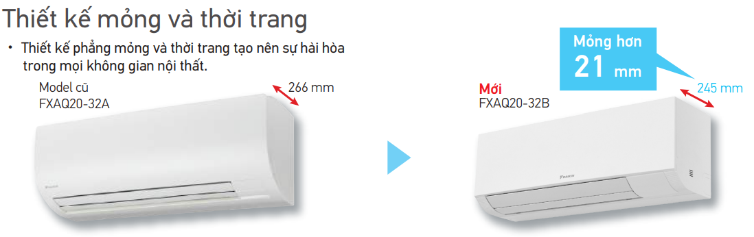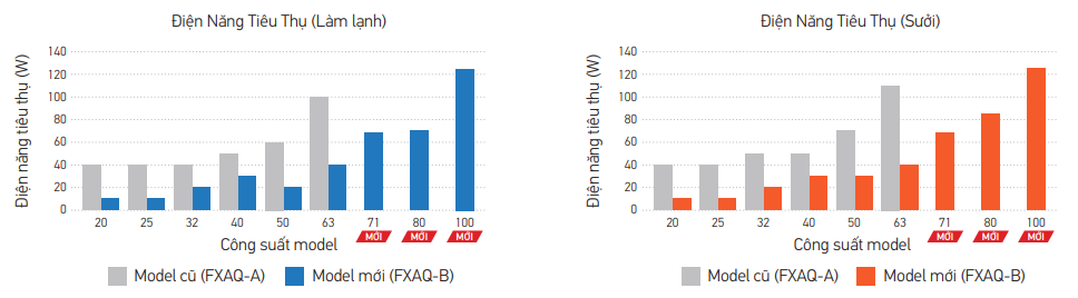 - FXAQ-B giúp tiết kiệm năng lượng hơn bao giờ hết với mức tiêu thụ điện thấp hơn đáng kể.