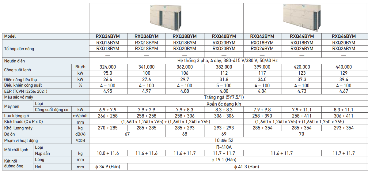 Dàn nóng điều hòa không khí trung tâm VRV Daikin RXQ44BYM - Hiệu Suất Vượt Trội với Cấu Trúc Đáng Tin Cậy và Nhỏ Gọn Hơn