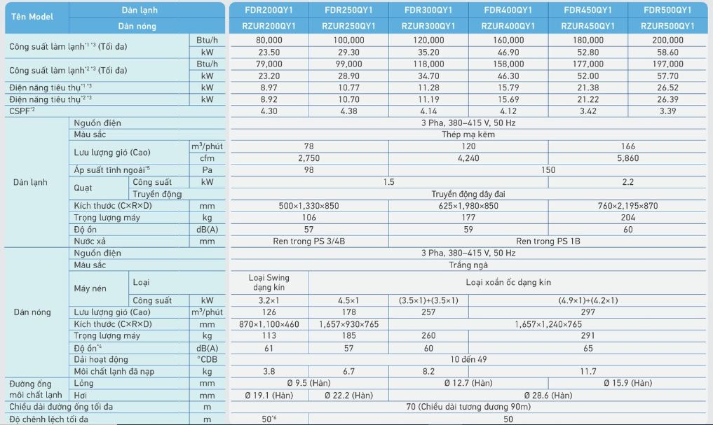 Thông số dàn nóng RZUR400QY1