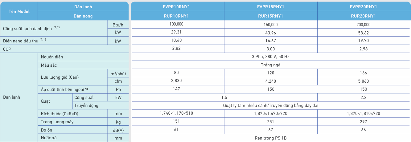 FVPR10RNY1/RUR10RNY1 là máy lạnh công nghiệp loại tủ đứng đặt sàn nối ống gió 1 chiều Non - Inverter. Công suất làm lạnh 150,000BTU/h,. Điều hòa không khí Packaged dành cho nhà máy và văn phòng.